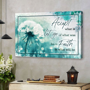 This Christian wall art features the saying 'accept what is let go of what was and have faith in what will be.' A perfect Christian gift for friends and loved ones for any occasions such as Mother's day, Father's day, Baptism, Christmas, or 'just because.'