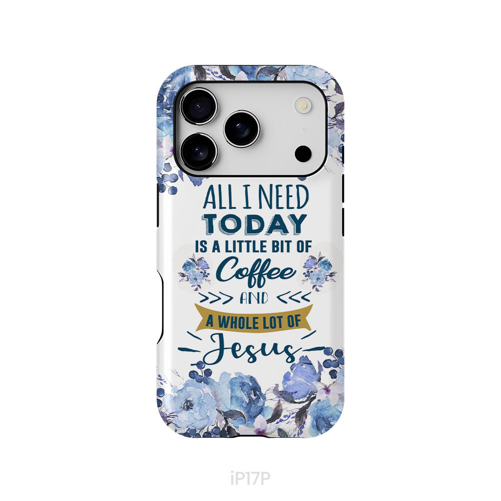 'All I need today is a little bit of coffee and a whole lot of Jesus' phone case