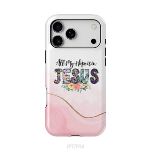 This all my hope is in Jesus phone case is an easy way to share your Faith and to make a great conversation starter to share Jesus with others. A perfect Christian gift for your friends and loved ones.