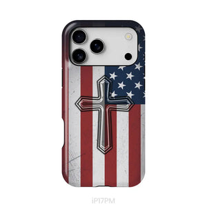 This Christian phone case has a cross in the middle of the American flag. It's about faith and love for the country. Put this case on your phone to show your belief and pride every day. It's a good gift for friends or family on special days like the Fourth of July or Veteran's Day, or anytime you want to share faith and freedom.