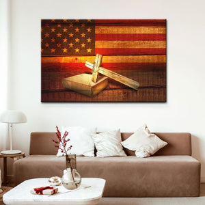 American Flag Cross With Holy Bible Book Wall Art Canvas