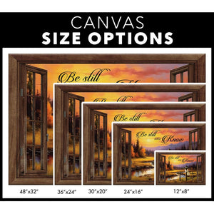 This "Be Still and Know That I Am God" wall art canvas features a serene river at sunset, reflecting the calming message of Psalm 46:10. It serves as a quiet reminder in your living room or bedroom, inspiring peace in your daily life. This Psalm 46:10 canvas print makes a perfect gift for all occasions.