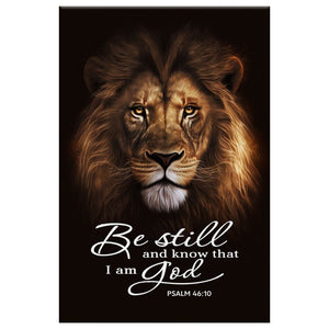 This Christian canvas wall art features the Jesus the Lion Of Judah picture and the Bible quote 'Be still and know that I am God Psalm 46:10.' A perfect Christian gift for your friends and loved ones.
