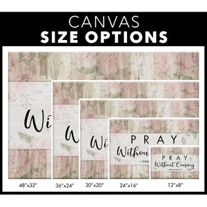 This Christian wall art canvas features flower paintings with the 1 Thessalonians 5:17 Bible quote 'Pray Without Ceasing.' This Bible verse wall art provides an inspirational reminder to spend time in prayer with God throughout your day. A meaningful Christian gift for any occasion and to encourage a friend or loved one in their faith journey.