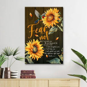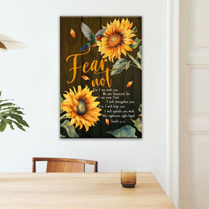 Hang this Isaiah 41:10 wall art canvas print in your home to remind you of God's promise to be with you and give you strength. Featuring the reassuring words from Isaiah 41:10, 'Fear not, for I am with you; Be not dismayed, for I am your God. I will strengthen you, Yes, I will help you, I will uphold you with My righteous right hand.' This Christian wall art makes a perfect gift for your friends and family for any occasion.
