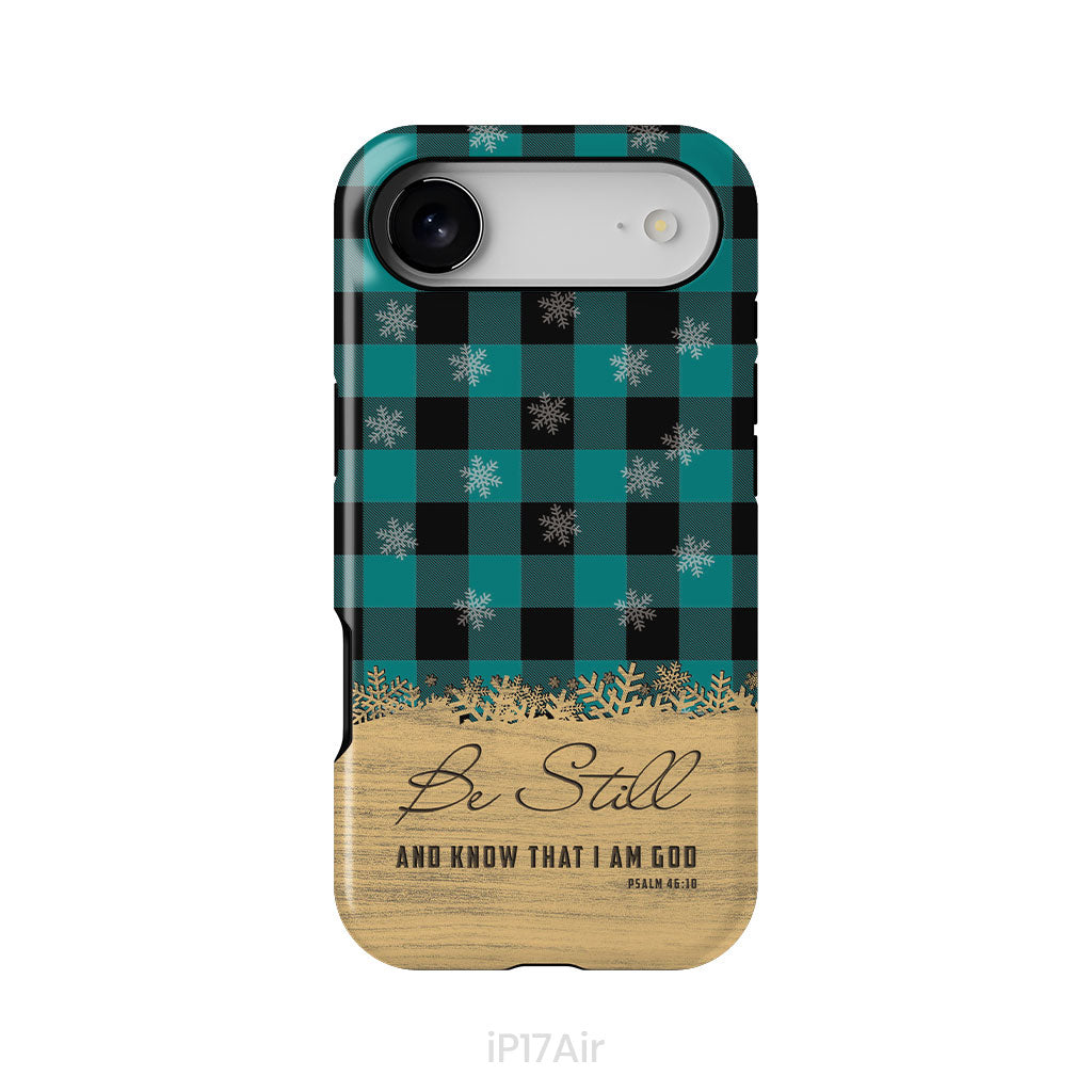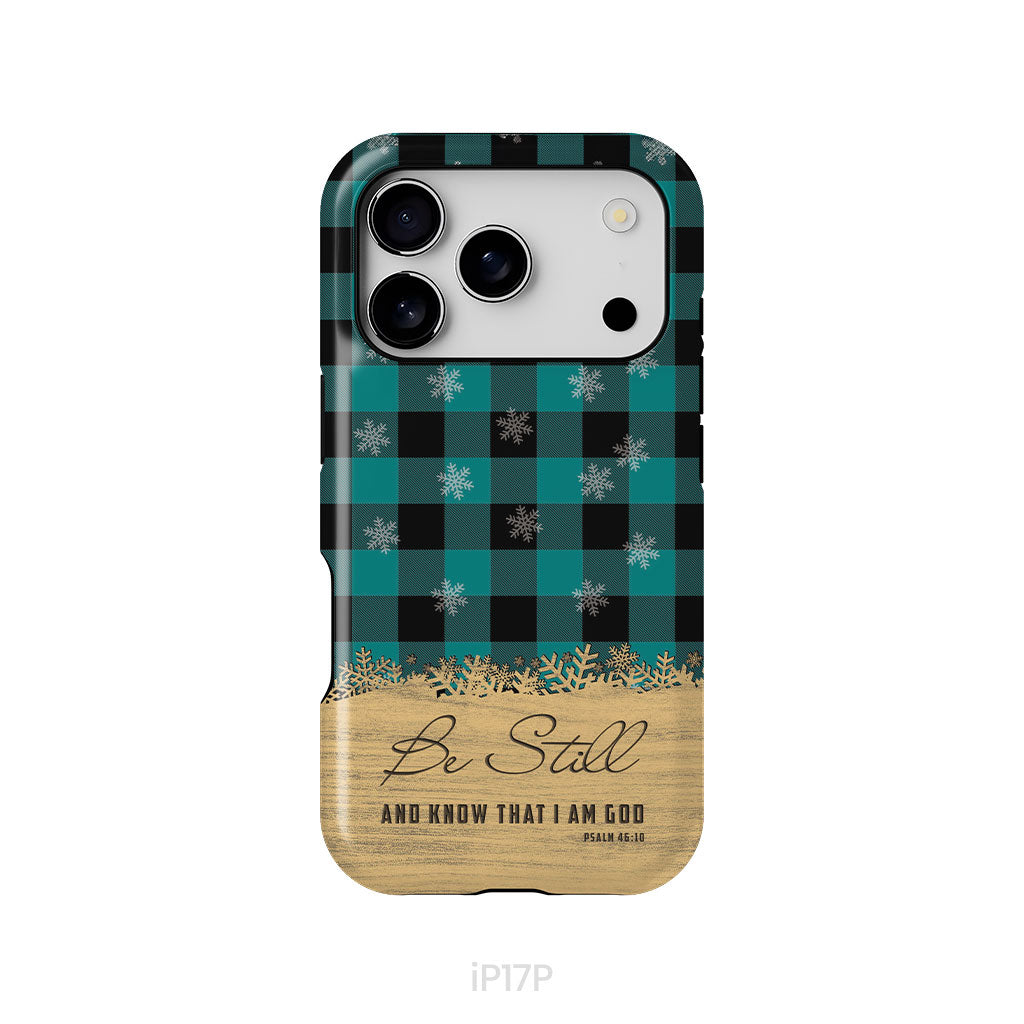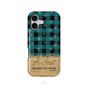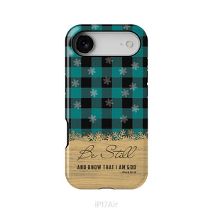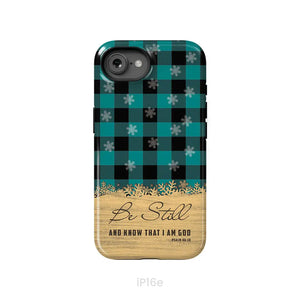 This teal black buffalo plaid Christmas phone case is inspired the Bible verse Psalm 46:10 'Be still and know that I am God.' A perfect gift to give to a special friend or loved one during Christmas season.