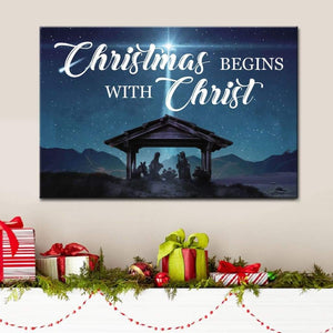This 'Christmas begins with Christ' Christmas wall art canvas print makes a perfect gift to give to a special friend or loved one during Christmas season.