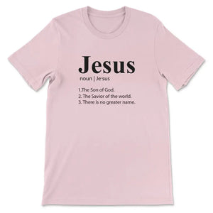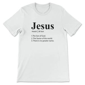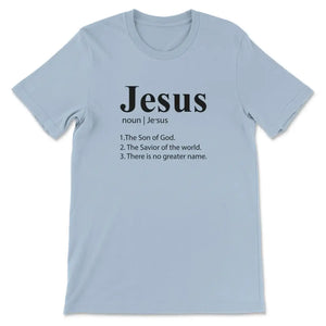 This "Definition of Jesus" t-shirt celebrates your faith. Featuring the name of Jesus and its meanings, it reminds you of His role as the Son of God and Savior. Perfect for daily wear and church events. A great gift for both men and women to share God's love.