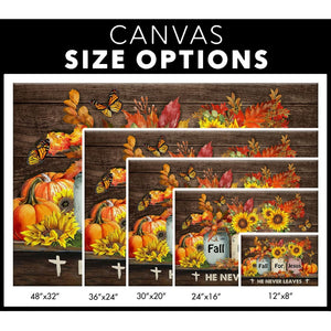 Brighten up your room this fall with our "Fall For Jesus - He Never Leaves" wall art canvas. It mixes pretty autumn colors with a strong message that Jesus is always with us. This Christian wall art fits well in any space and is a great way to share faith-based talks with family and friends. It's a comforting gift for others or a meaningful piece for your own home.