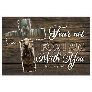 Adorn your space with this inspiring Christian wall art canvas featuring Isaiah 41:10, "Fear not for I am with you." The design beautifully depicts a cross with a lost sheep and Jesus in the background, symbolizing divine protection and guidance. This canvas print is a constant reminder of God's unwavering presence and love. Perfect for living rooms, bedrooms, or offices. Ideal as a gift for loved ones, especially on occasions like birthdays, anniversaries, or housewarmings. Encourage faith and bring peace to your home with this uplifting artwork.