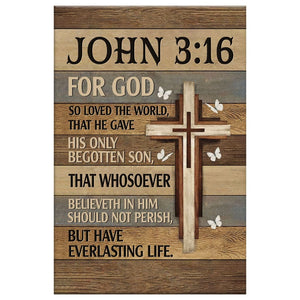 This Christian wall art canvas, inspired by John 3:16 KJV 'For God so loved the world, that he gave his only begotten Son, that whosoever believeth in him should not perish, but have everlasting life.', beautifully captures the essence of God's love and sacrifice. It's an ideal piece for a living room or prayer space, creating an atmosphere of faith and reflection. This canvas print makes a thoughtful gift for family and friends on occasions like Easter, Christmas, or as a heartfelt expression of faith during life's milestones. It serves as a constant reminder of the promise of everlasting life and the depth of God's love for us.