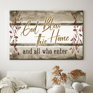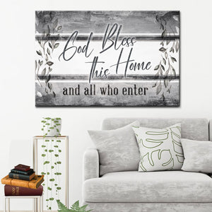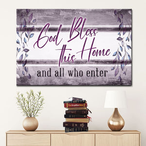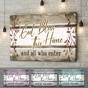 Display this 'God bless this home and all who enter' Christian wall art canvas in your home as a simple reminder to ask God daily for His blessings upon your home and family. A meaningful Christian gift for special occasions such as birthdays, weddings, and housewarmings... or simply just because.