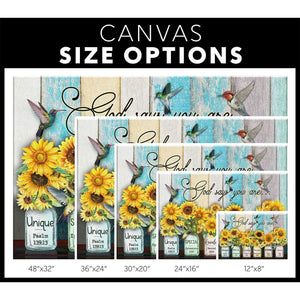 This lovely Christian canvas shares a gentle message from God: you are loved, you are chosen, and you are never alone. The hummingbird and sunflower bring a feeling of peace and joy. The hummingbird reminds us of hope and light, and the sunflower turns toward the sun, just like we turn to God.
