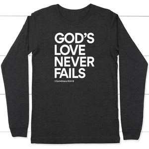 1 Corinthians 13:4-8 God's Love Never Fails Bible Verse Long Sleeve Shirt