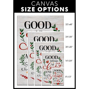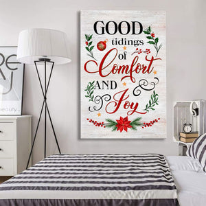 Add some calm Christmas cheer to your home with our Good Tidings of Comfort and Joy wall art canvas. A perfect gift for others to enjoy throughout the Christmas season.