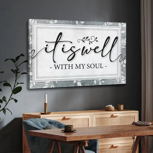 Hang this "It is Well With My Soul" canvas in your space to add a touch of serenity. With its gentle script and soft leafy design, it's perfect for creating a peaceful atmosphere in your bedroom, living room, or a quiet corner for reflection. Gift this Christian canvas wall art to someone who loves timeless hymns, as a comforting presence in times of need, for a special occasion, or just to share a message of calm and well-being.