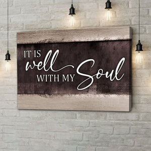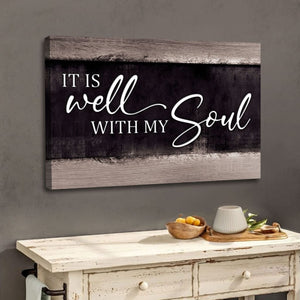 Display this 'It Is Well with My Soul' wall art canvas in your home and enjoy its meaningful message and its fashionable. A beautiful reminder to give thanks to God for the peace He gives to your heart, mind, and soul. Perfect for gifting on all occasions!
