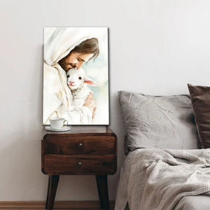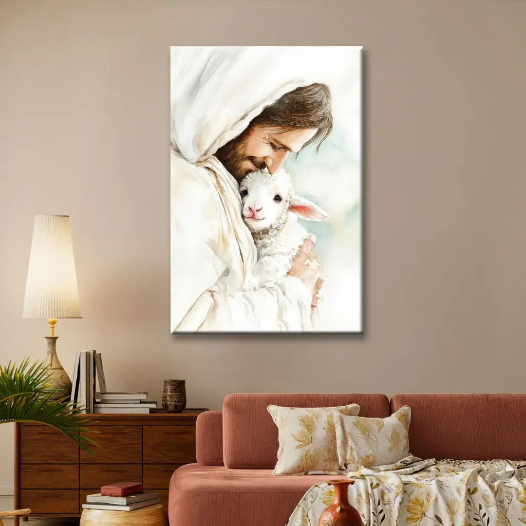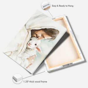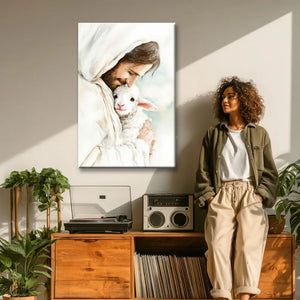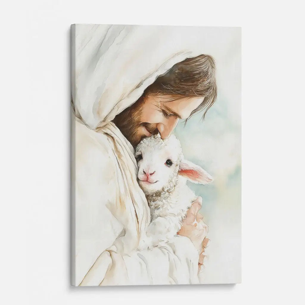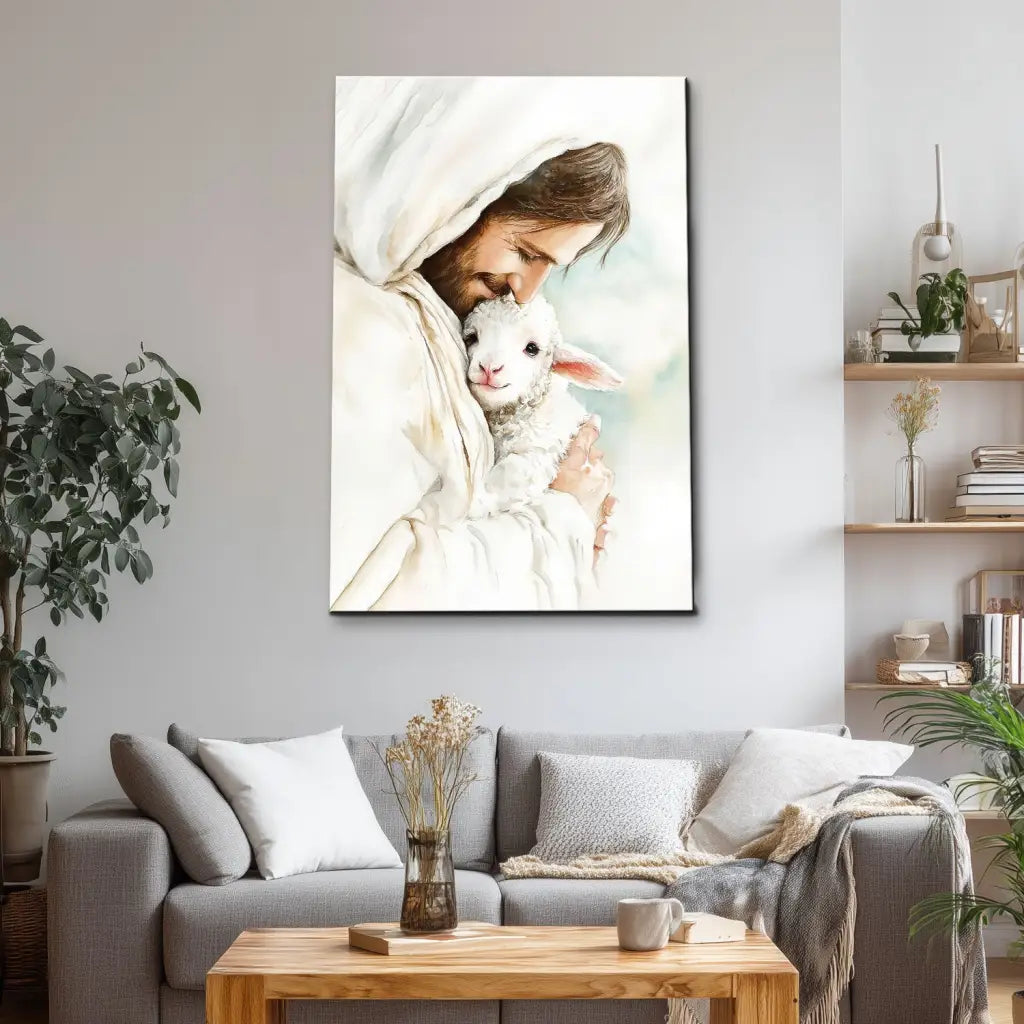 Hang this canvas in your home and be reminded each day that Jesus holds you close, just like the lamb—protected, loved, and never alone. The Christian artwork shows the Good Shepherd holding a little lamb close to His chest, based on John 10:11—“I am the good shepherd.” It’s a peaceful reminder that no matter what we face, we are safe in His care, surrounded by His love and never forgotten.