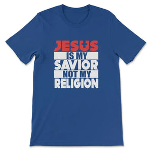 Share your faith with this "Jesus Is My Savior, Not My Religion" t-shirt. This shirt is perfect for Christians who love Jesus and want to show it. Wear it for casual outings, church events, or gatherings with friends. It's a great conversation starter, helping you share your beliefs with others. This t-shirt makes a wonderful gift to inspire friends or family in their faith and remind them that Jesus is the heart of Christianity.
