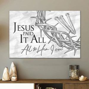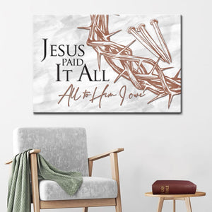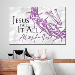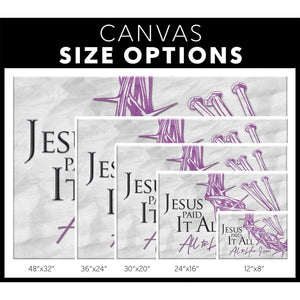 This beautiful 'Jesus paid it all all to Him I owe' wall art canvas features a famous hymn and serves as a gentle reminder of sacrifice. A perfect Christian gift for friends and loved ones for any occasion such as Mother's day, Easter, Father's day, Baptism, Christmas, or 'just because'.