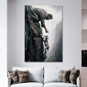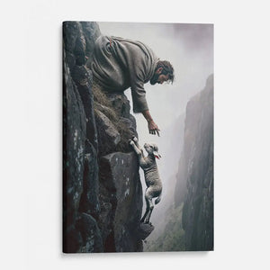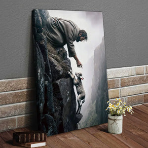 This Christian wall art canvas shows Jesus reaching for a lost sheep on a steep cliff, beautifully symbolizing His love, care, and willingness to rescue us in our darkest moments. The powerful image serves as a reminder of God’s constant presence and protection, no matter how lost we feel. Hang it in your living room, bedroom, office, or prayer space to feel His comforting love daily.