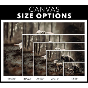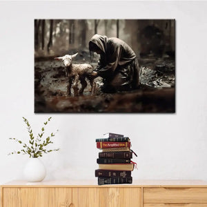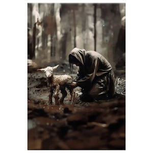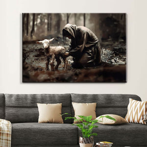 Hang the "Jesus Rescues Lost Lamb" Christian wall art canvas in your home, office, or church to feel Jesus' love and care. This beautiful design shows Jesus in the mud, gently rescuing a lost lamb, reminding us of His constant presence and compassion. Perfect for living rooms, bedrooms, prayer spaces, offices, or church halls, this canvas brings comfort and inspiration.
