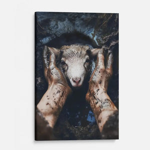 Feel comfort and joy every day with this beautiful Christian wall art canvas. It shows Jesus gently pulling a little lamb out of mud, reminding you how much He cares and helps you when things get tough. Put it in your living room, bedroom, or a special place for prayer to feel God's love and kindness each time you look at it.