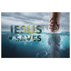This Jesus saves wall art canvas features the Jesus reaching out his hand pictures and the words 'Jesus saves'. An easy way to share your Faith and to make a great conversation starter to share Christ with others.