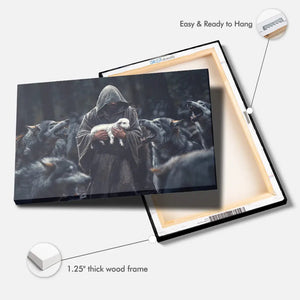 Bring a powerful reminder of Jesus' protection into your home with this Christian wall art canvas. The design shows Jesus, the Good Shepherd, holding a lamb safely in His arms, while fierce wolves surround them. This image represents how Jesus protects us from danger, no matter how hard life gets.