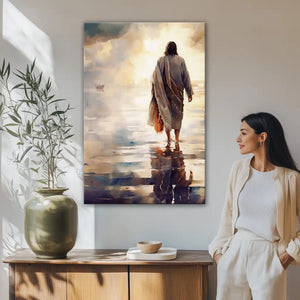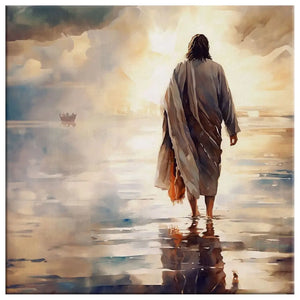 Brighten your room with our "Jesus Walking on Water" wall art canvas. This Christian art captures a powerful biblical moment, showcasing Jesus' miracles and his guiding presence in our lives. It serves both as a decorative piece and a conversation starter about faith. This canvas print is a wonderful gift for friends and family or a meaningful addition to your own home.