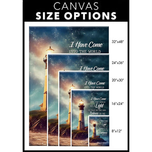 This Christian wall art canvas displays a powerful image of a lighthouse, with Bible verse John 12:46: 'I have come into the world as a light, so that no one who believes in me should stay in darkness.' It serves as an impactful reminder of Jesus' role as our guiding light in times of darkness. It is an ideal gift to comfort and encourage loved ones for any occasion. Display it in your living room, bedroom, or office to cultivate an environment of hope and faith.
