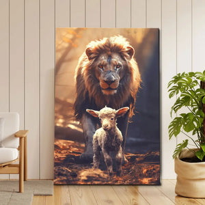 Add a touch of inspiration with this Christian wall art canvas showing a lion and a lamb walking together in a peaceful forest. The image reminds us of God’s strength and gentle love, representing Jesus as both the Lion of Judah and the Lamb of God.