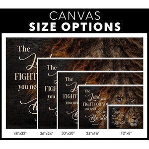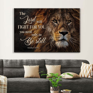 This Christian wall art canvas features the Lion of Judah picture with the Exodus 14:14 'The Lord will fight for you, you need only to be still' A perfect Christian gift for friends and loved ones for any occasion such as Mother's day, Father's day, Baptism, Christmas, Housewarming or 'just because'.