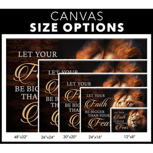 Let this "Lion of Judah, Let Your Faith Be Bigger Than Your Fear" wall art canvas inspire and uplift your home or office. Featuring a majestic lion and a powerful message, this Christian wall art serves as a reminder of the strength and courage that come from faith in Christ. Perfect for gifting on special occasions for friends, family, or loved ones.