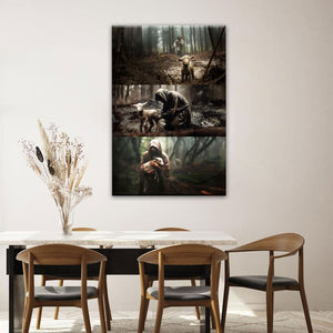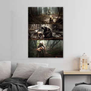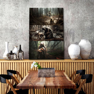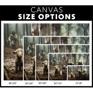 This Christian wall art canvas features three heartwarming scenes of Jesus with a lost sheep, all on one canvas. First, He runs towards it, then He rescues it, and finally, He carries it to safety. Each image shows His love and care for each of us individually.