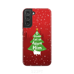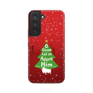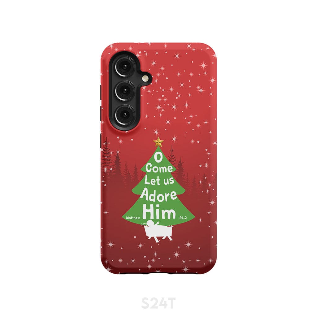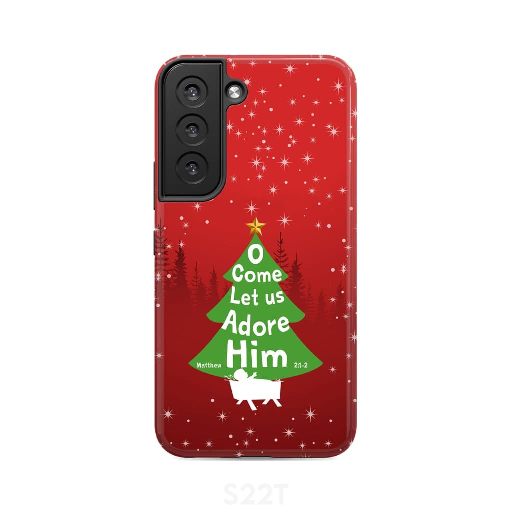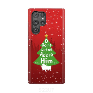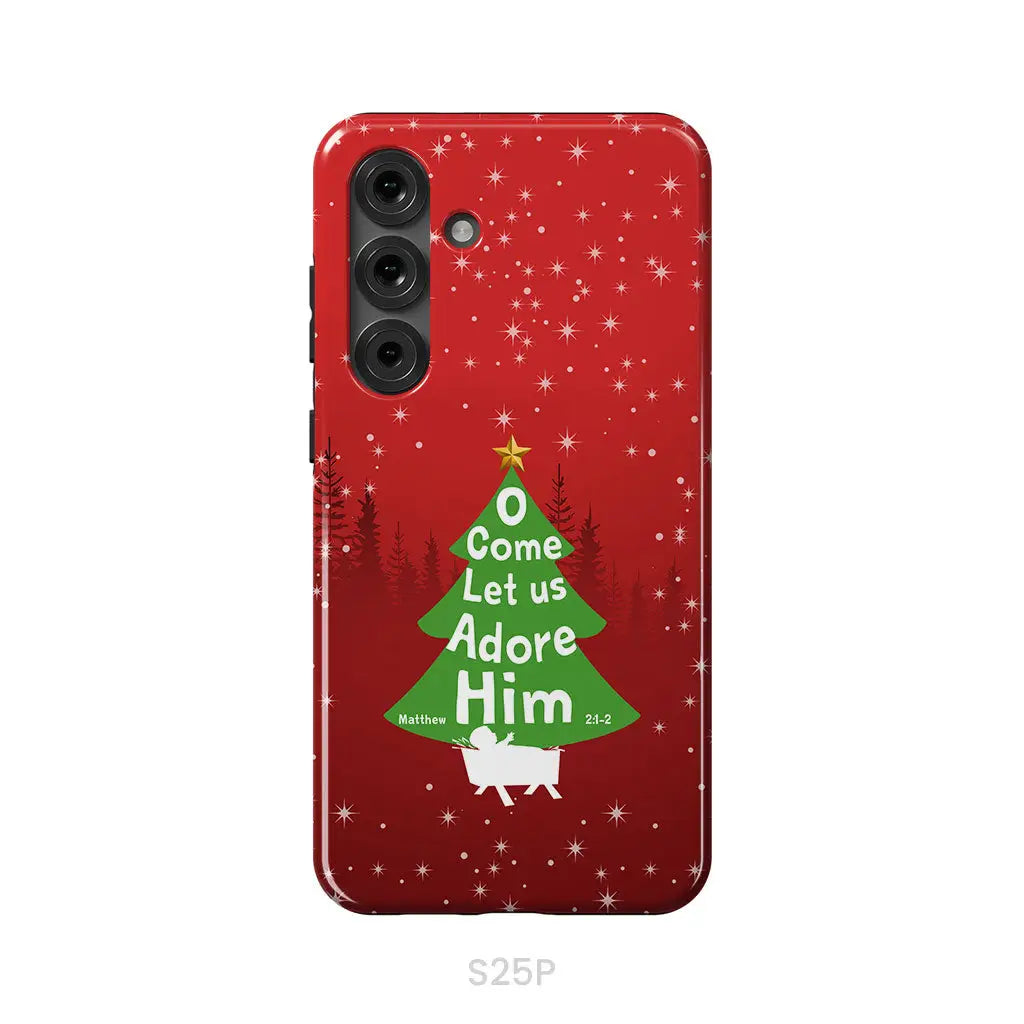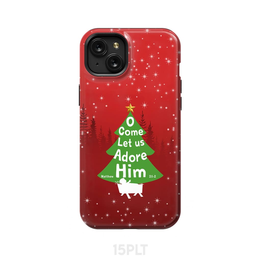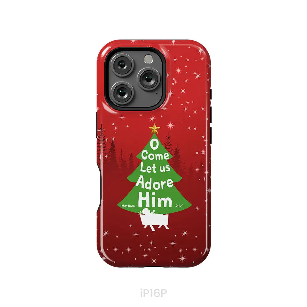 This 'O come let us adore Him' Christmas phone case features a classic Christmas hymn and Christ in the manger picture. A meaningful Christmas gift idea for family and friends.