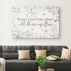 This Christian wall art canvas features a very old yet beautiful hymn 'Praise God from whom all blessings flow'