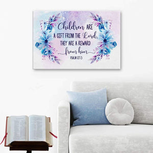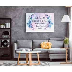 'Children are a gift from the Lord; they are a reward from him Psalm 127:3' canvas wall art. A thoughtful gift for any occasion.