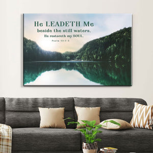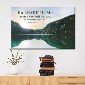 This Christian wall art canvas features Psalm 23:2-3 'He Leadeth Me Beside the Still Waters, He Restoreth My Soul,' offering a peaceful message of God's guidance and care. It's perfect for your home, office, or as a thoughtful gift for a loved one. The design is a reminder of faith, providing calm and inspiration each day.
