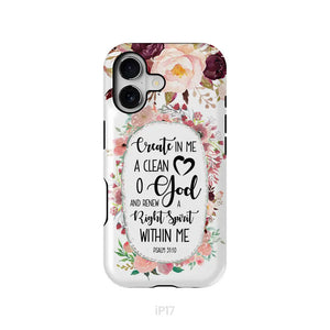 Psalm 51:10 Create In Me A Clean Heart Phone Case, Bible Verse Phone Cases