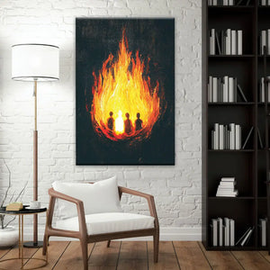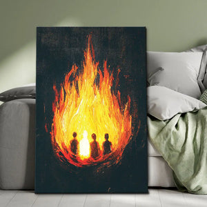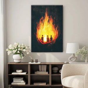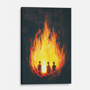 This Christian canvas print, The Fiery Furnace, beautifully captures the story of Shadrach, Meshach, and Abednego from the Bible. It shows the three men standing together inside a glowing, fiery furnace, surrounded by bright orange and yellow flames. Yet, they are safe and unharmed, with a calm presence by their side: the Son of God. The warm, vivid flames shine brightly against the dark background, reminding us of God’s miraculous protection and strength, even in the toughest moments.