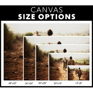 This Christian wall art canvas captures the heartfelt moment from the parable of the prodigal son, with a father running to welcome his child home on a dusty road. It's a powerful image of forgiveness and love. Hang this piece in your living room, hallway, or office to inspire and remind us of the unconditional love that awaits us when we return home. It’s a meaningful gift for family members, especially those who appreciate biblical stories, or for friends who need a message of hope and acceptance. Perfect for occasions like reunions, religious milestones, or just to express love and forgiveness.