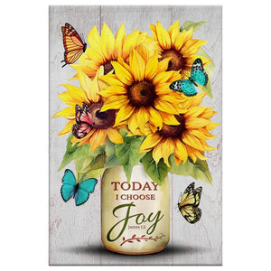 Inspired by James 1:2, this Today I Choose Joy wall art is a wonderful reminder that we can choose joy, no matter our circumstances. Featuring a design of butterflies with a vase of sunflowers, this canvas print would make a wonderful source of encouragement for a friend or loved one.