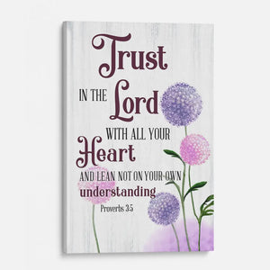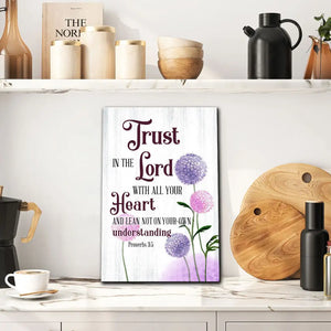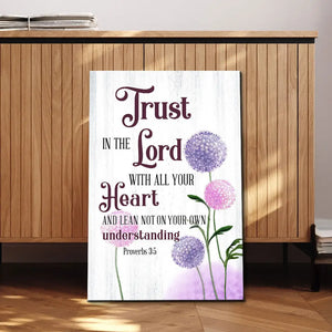This Christian wall art canvas features dandelion flowers with the powerful verse from Proverbs 3:5, 'Trust in the Lord with all your heart and lean not on your own understanding.' It serves as a daily reminder to place our trust in God's wisdom over our own. It makes a thoughtful Christian gift for friends, family, or any loved one in need of encouragement and inspiration.