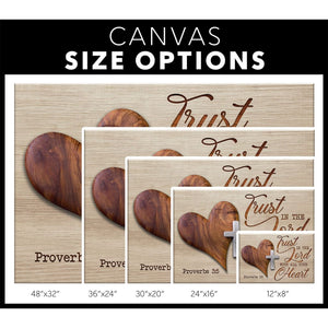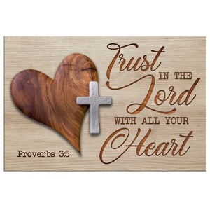 Encourage others who have confirmed their faith in Christ with this 'Trust in The Lord with All Your Heart' canvas wall art. The powerful Scripture from Proverbs 3:5 printed on this Christian wall art canvas is a lovely reminder to trust God with all your heart in all circumstances. A perfect keepsake to treasure for years to come.