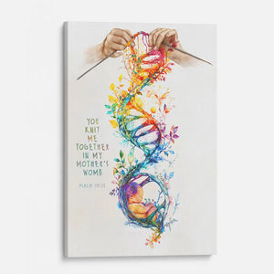 This "You Knit Me Together in My Mother's Womb" wall art canvas features an image of a baby being knit in the womb, along with the beautiful words from Psalm 139:13. It serves as a reminder of God’s loving care, showing that each of us is wonderfully made and known by Him from the very beginning.